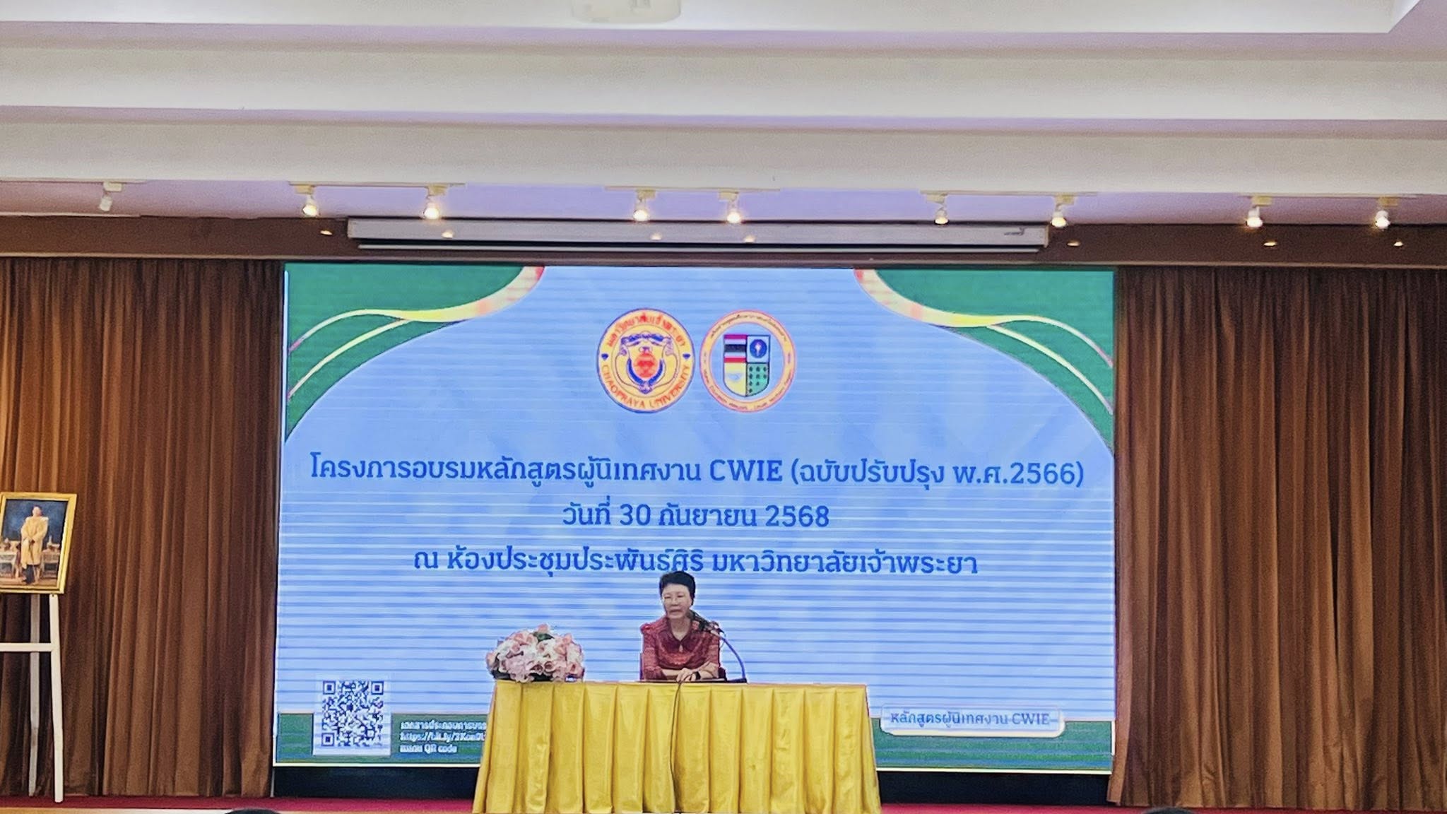 แพทย์หญิงปราณี ศิริวิริยะกุล รองอธิการบดีฝ่ายการเงินการคลัง มหาวิทยาลัยเจ้าพระยา  ให้เกียรติเป็นประธานเปิดโครงการอบรมหลักสูตรผู้นิเทศงาน CWIE (ฉบับปรับปรุง พ.ศ. 2566) เครือข่าย CWIE ภาคเหนือตอนล่าง เมื่อวันอังคารที่ 30 กันยายน 256  ณ ห้องประชุมประพันธ์ศิริ อาคารสำนักบริหารจรูญ-หทัย มหาวิทยาลัยเจ้าพระยา