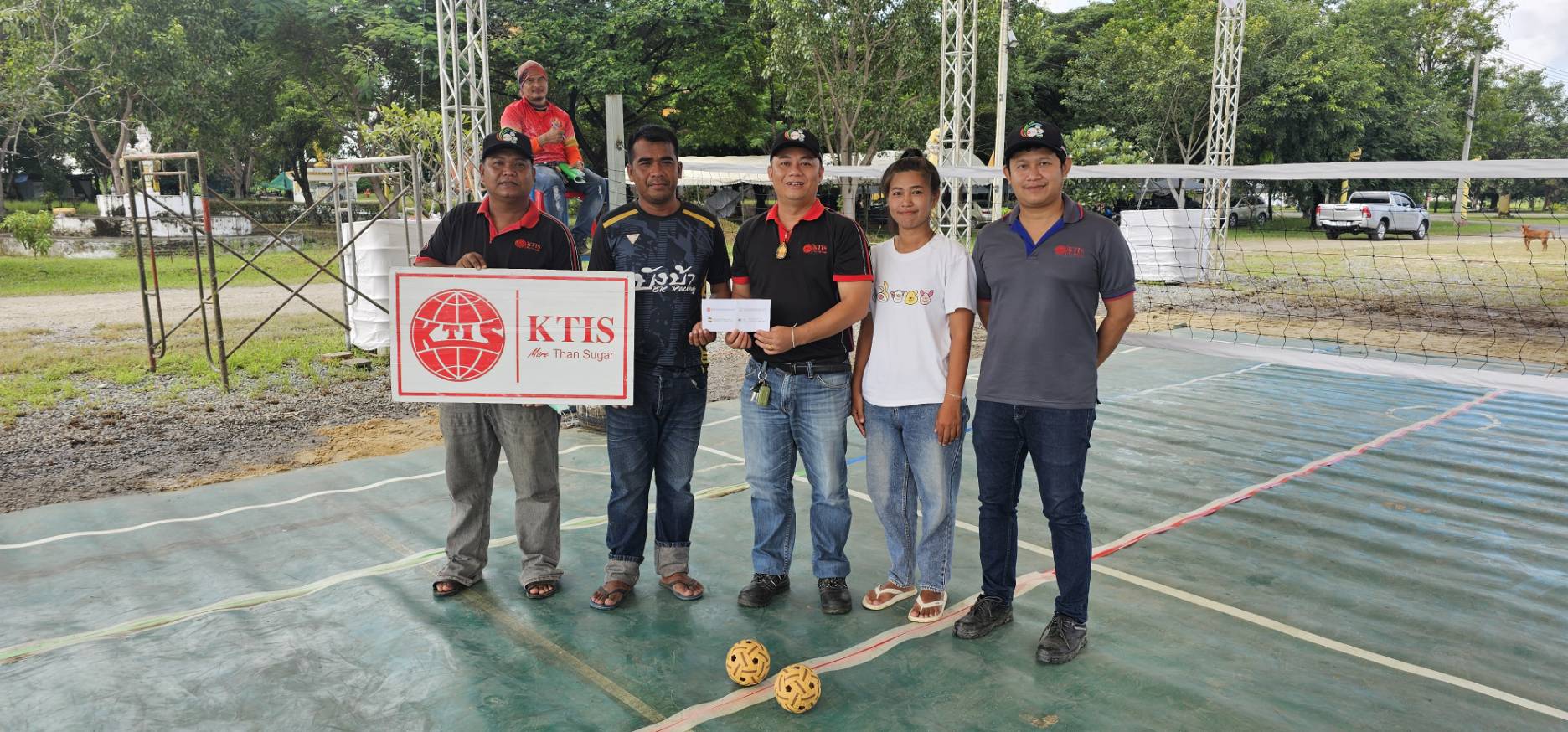 ปริญญ์ ศิริวิริยะกุล ผู้จัดการโรงงาน เกษตรไทย อินเตอร์เนชั่นแนล ชูการ์ คอร์ปอเรชั่น ปอเรชั่น  มอบหมาย สราวุฒิ เข็มวงษ์ ผู้จัดการส่วนบุคคลและมวลชนสัมพันธ์ พร้อมด้วยทีมงานมวลชนสัมพันธ์ KTIS GROUP  มอบเงินสนับสนุนการจัดการแข่งขันเซปักตะกร้อการกุศลครั้งที่ 1 เพื่อการระดมทุนจัดซื้ออุปกรณ์ก่อสร้างอุโบสถวัดศรีอินทราราม ณ วัดศรีอินทราราม ตำบลไร่พัฒนา อำเภอมโนรมย์ จังหวัดชัยนาท เมื่อวันพฤหัสบดีที่ 13 ตุลาคม 2568