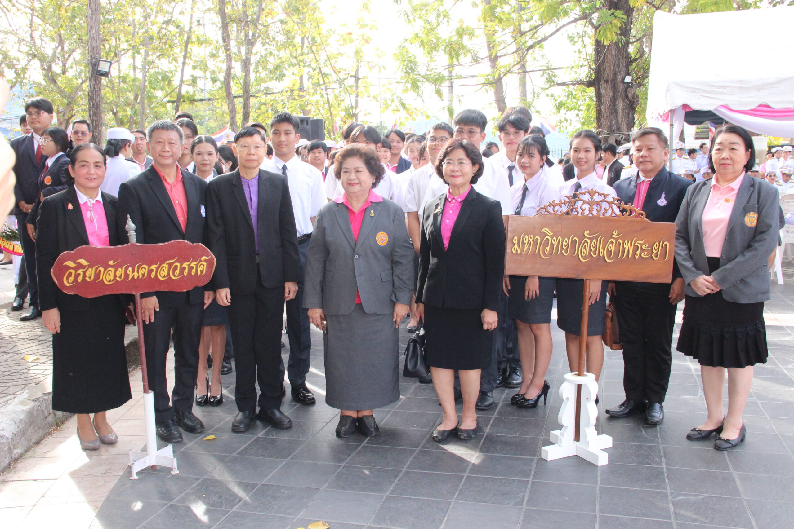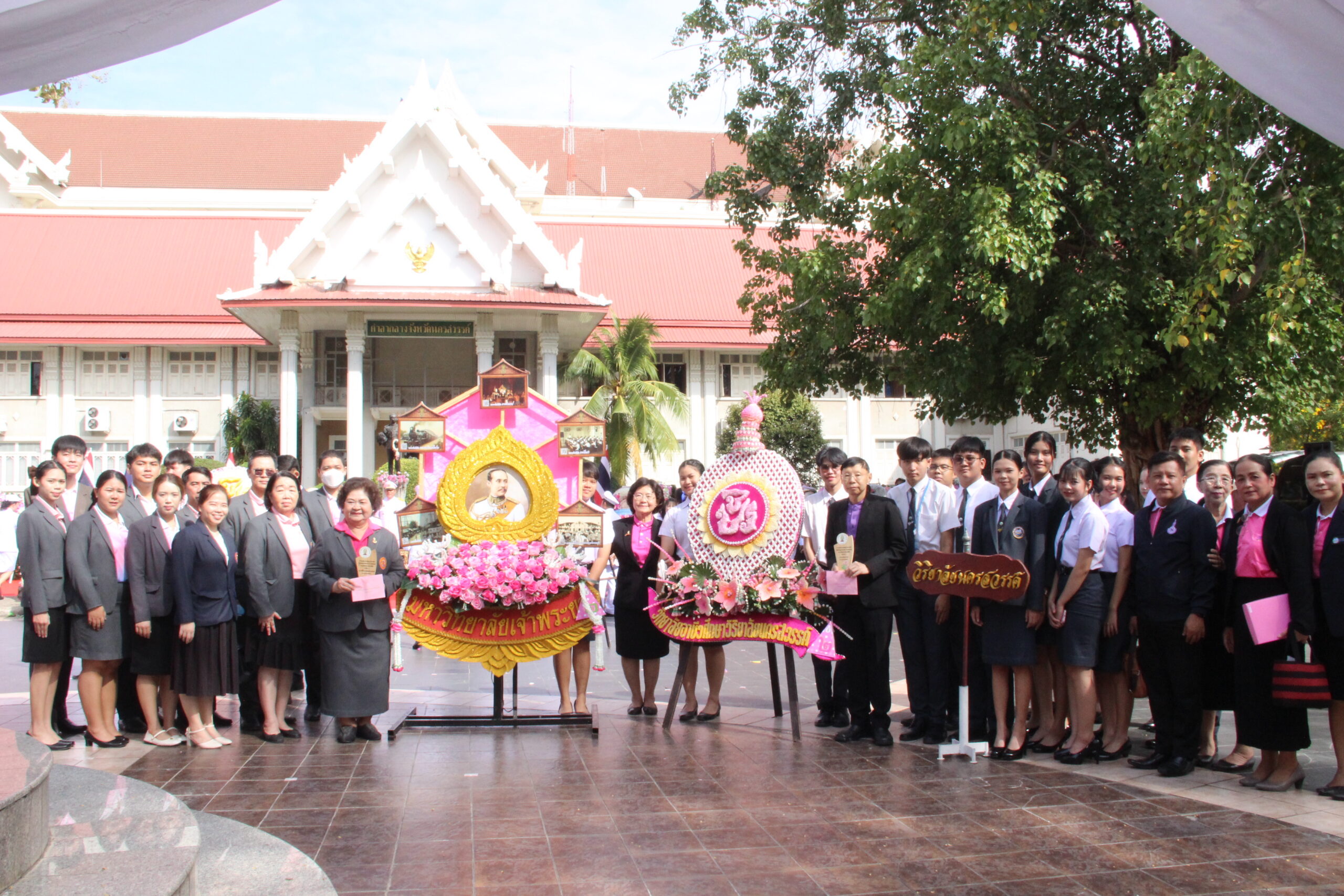 ดร.ดารัตน์ ศิริวิริยะกุล วิภาตะกลัศ อธิการบดีมหาวิทยาลัยเจ้าพระยา และประธานคณะกรรมการบริหารวิทยาลัยอาชีวศึกษาวิริยาลัยนครสวรรค์ พร้อมด้วย ทพ.สุพจน์ หวังปรีดาเลิศกุล และ ทพ.ญ.เนาวรัตน์ หวังปรีดาเลิศกุล กรรมการสภามหาวิทยาลัยเจ้าพระยานำผู้บริหาร คณาจารย์ และนักศึกษาร่วมพิธีวางพวงมาลาและถวายราชสดุดี เนื่องในวันปิยมหาราช พร้อมรับรางวัลการประกวดพวงมาลา จัดโดยสมาคมนิสิตเก่าจุฬาลงกรณ์มหาวิทยาลัย นครสวรรค์ ซึ่งมหาวิทยาลัยเจ้าพระยา ได้รับรางวัลรองชนะเลิศอันดับ 1 ประเภทความคิดสร้างสรรค์ วิทยาลัยอาชีวศึกษาวิริยาลัยนครสวรรค์ ได้รับรางวัลรองชนะเลิศอันดับ 1 ประเภทสวยงาม จาก ศุภมิตร ชิณศรี ผู้ว่าราชการจังหวัดนครสวรรค์ เมื่อวันพฤหัสบดีที่ 23 ตุลาคม 2568 ณ บริเวณพระบรมราชานุสาวรีย์ พระบาทสมเด็จพระจุลจอมเกล้าเจ้าอยู่หัว ศาลากลางจังหวัดนครสวรรค์