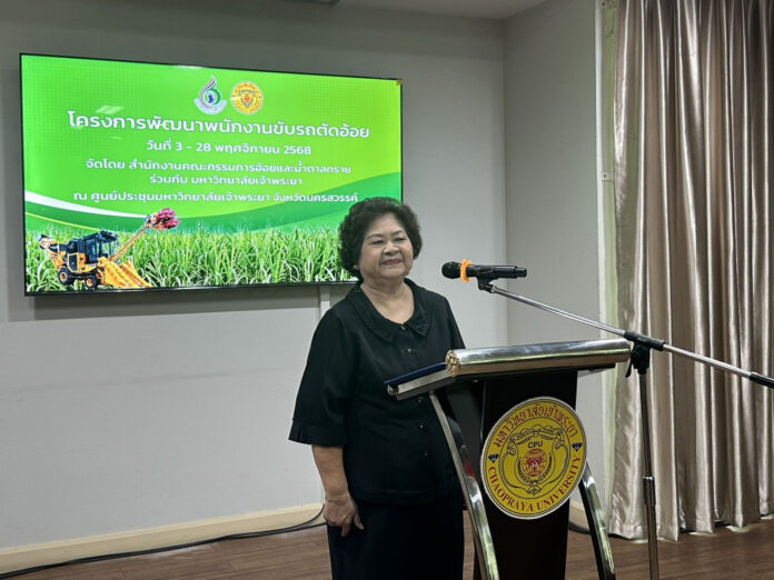 สำนักงานคณะกรรมการอ้อยและน้ำตาลทราย (สอน.) ได้ร่วมมือกับ มหาวิทยาลัยเจ้าพระยา เปิดตัวโครงการพัฒนาพนักงานขับรถตัดอ้อย ได้รับเกียรติจาก ดร.ดารัตน์ ศิริวิริยะกุล วิภาตะกลัศ อธิการบดีมหาวิทยาลัยเจ้าพระยา กล่าวต้อนรับและเปิดตัวโครงการฯ เมื่อวันจันทร์ที่ 3 พฤศจิกายน 2568 โดย ใบน้อย สุวรรณชาตรี เลขาธิการคณะกรรมการอ้อยและน้ำตาลทราย มอบหมายให้ ธวัช หะหมาน ผู้อำนวยการกองยุทธศาสตร์และแผนงาน พร้อมด้วย ศยารัตน์ คงธนโชติเดชา ผู้อำนวยการกองอุตสาหกรรมอ้อย น้ำตาลทราย และอุตสาหกรรมต่อเนื่อง และเจ้าหน้าที่ สอน. เข้าร่วมพิธีเปิด “โครงการพัฒนาพนักงานขับรถตัดอ้อย”  มีเกษตรกรชาวไร่อ้อย เจ้าหน้าที่โรงงานน้ำตาล เข้าร่วมอบรมรวม 4 รุ่น รุ่นละ 50 คนตั้งแต่วันจันทร์ที่ 3 – ศุกร์ที่ 28  ณ  ศูนย์ประชุมมหาวิทยาลัยเจ้าพระยา จังหวัดนครสวรรค์
