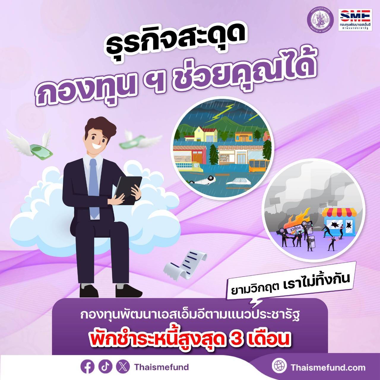 …………………………………….. @ น้ำท่วม พายุ หรือวิกฤตไม่คาดคิด อาจทำให้ธุรกิจสะดุด แต่…คุณไม่จำเป็นต้องหยุดเดินต่อ กองทุนพัฒนาเอสเอ็มอีตามแนวประชารัฐ ขอเป็นแรงหนุนให้คุณฟื้นตัวได้เร็วขึ้นด้วยมาตรการ พักชำระหนี้เงินต้นสูงสุด 3 เดือน ชำระเฉพาะดอกเบี้ยตามจริง ลดภาระเพิ่มโอกาสตั้งหลักใหม่ SMEsที่เป็นลูกหนี้กองทุนฯ และอยู่ในพื้นที่ประกาศภัยพิบัติ สามารถยื่นสิทธิ์ได้ทันที! เพราะเรารู้ว่า…ในยามวิกฤต สิ่งที่สำคัญที่สุดคือโอกาสให้ธุรกิจยังไปต่อ สอบถามข้อมูลเพิ่มเติมได้ที่ สำนักงานอุตสาหกรรมจังหวัดนครสวรรค์ หรือ SME D Bank ทุกสาขาทั่วประเทศ โทร. 1357…………………………………………………….. @หน่วยงานที่มีข่าวสารที่เป็นประโยชน์ต่อภาคอุตสาหกรรมในจังหวัดนครสวรรค์ สามารถฝากข่าวผ่านสภาอุตสาหกรรมจังหวัดนครสวรรค์ หรือต้องการสมัครเป็นสมาชิกสภาอุตสาหกรรมแห่งประเทศไทย และสภาอุตสาหกรรมจังหวัดนครสวรรค์ ติดต่อสอบถามได้ที่ นายชาณัฐธนพล แสงสุข ผู้จัดการสภาอุตสาหกรรมจังหวัดนครสวรรค์ โทรศัพท์ 056-245497,081-0428 934 โทรสาร 056-245 498 e-mail: [email protected], https://www.facebook.com/Nakhonsawan.fti