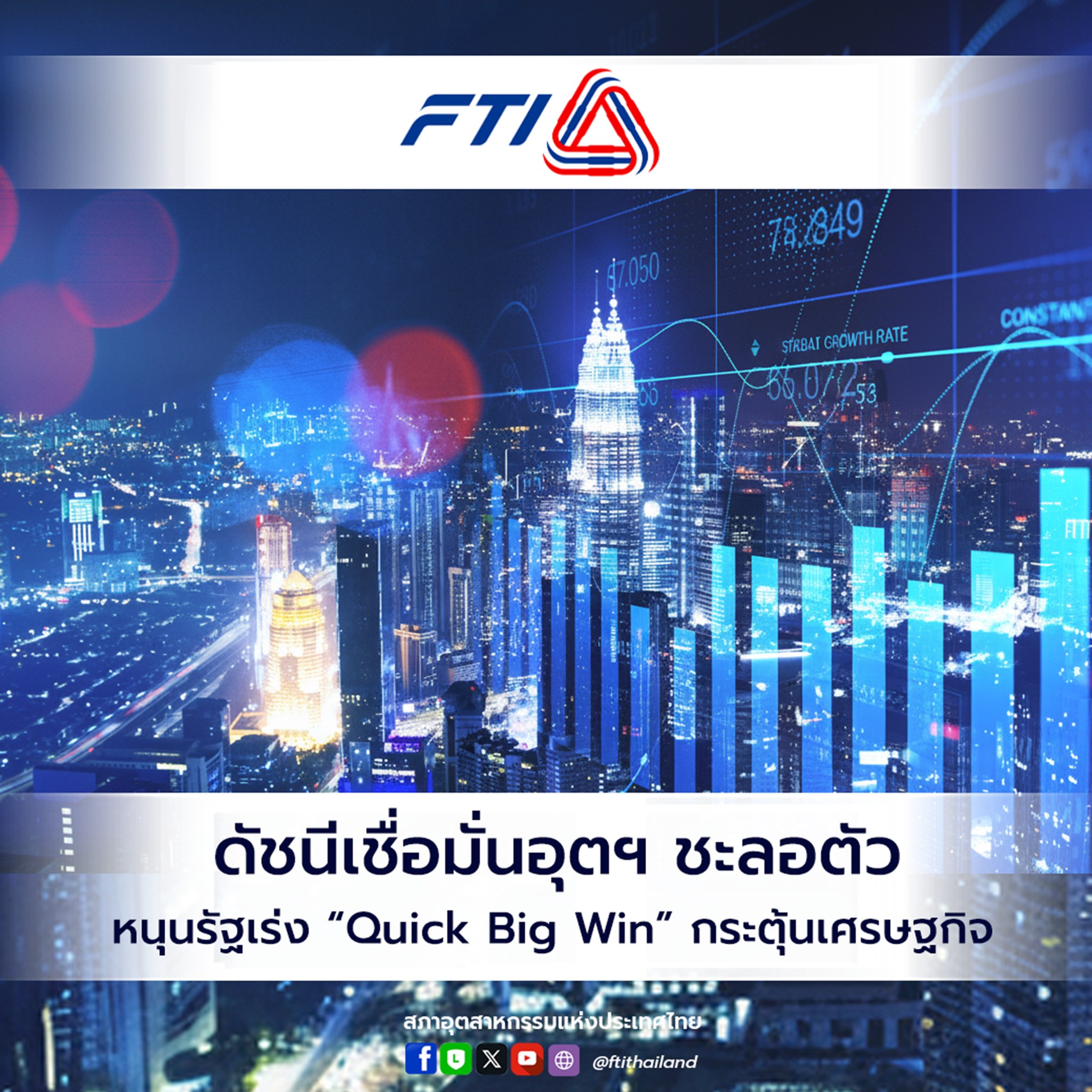 …………………………………… @ ดัชนีเชื่อมั่นอุตสาหกรรมฯ ชะลอตัว หนุนรัฐเร่ง “Quick Big Win” กระตุ้นเศรษฐกิจ นายเกรียงไกร เธียรนุกุล ประธานสภาอุตสาหกรรมแห่งประเทศไทย (ส.อ.ท.) เปิดเผยผลการสำรวจดัชนีความเชื่อมั่นภาคอุตสาหกรรมในเดือนตุลาคม 2568 อยู่ที่ระดับ 87.3 ปรับตัวลดลงเล็กน้อยจากระดับ 87.8 ในเดือนกันยายน 2568 ผลมาจากหลายปัจจัยสำคัญ อาทิ การส่งออกสินค้าคงทนปรับตัวลดลง ปัญหาการปิดหน่วยงานรัฐบาลกลางของสหรัฐฯ การนำเข้าสินค้าจากจีนยังคงขยายตัวอย่างต่อเนื่อง ความกังวลต่อสถานการณ์น้ำและอุทกภัยที่ยังคงขยายวงกว้างในหลายพื้นที่ และมูลค่าการค้าชายแดนและการค้าผ่านแดนยังคงหดตัวต่อเนื่อง