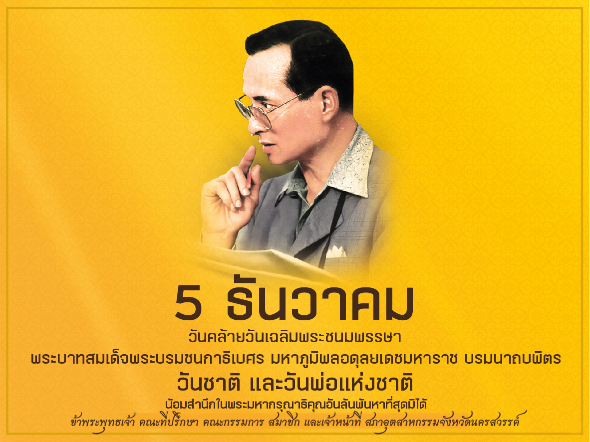 ผู้อ่านสวรรค์นิวส์และสมาชิกสภาอุตสาหกรรมจังหวัดนครสวรรค์…………………………………….. @ วันที่ 5 ธันวาคม เริ่มตั้งแต่ปี 2560 เป็นต้นมา ถือเป็น “วันสำคัญของชาติ” กำหนดให้ วันที่ 5 ธันวาคมของทุกปี เป็นวันสำคัญของชาติ ดังนี้ 1)วันเฉลิมพระชนมพรรษาของพระบาทสมเด็จพระบรมชนกาธิเบศร มหาภูมิพลอดุลยเดชมหาราช บรมนาถบพิตร 2)วันชาติ และ 3)วันพ่อแห่งชาติ ตามที่สำนักเลขาธิการคณะรัฐมนตรีเสนอให้เป็นวันหยุดราชการ ทั้งนี้แต่เดิม วันที่ 5 ธันวาคม ของทุกปี จะเป็นวันเฉลิมพระชนมพรรษาของพระบาทสมเด็จพระบรมชนกาธิเบศร มหาภูมิพลอดุลยเดชมหาราช บรมนาถบพิตร รัชกาลที่ 9 เป็นวันพ่อแห่งชาติ ซึ่งมีขึ้นครั้งแรก เมื่อวันที่ 5 ธันวาคม 2523 และใช้ดอกพุทธรักษา เป็นดอกไม้ประจำวันพ่อแห่งชาติ