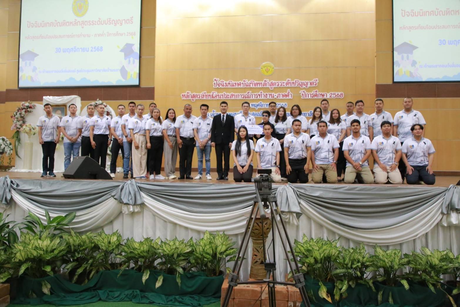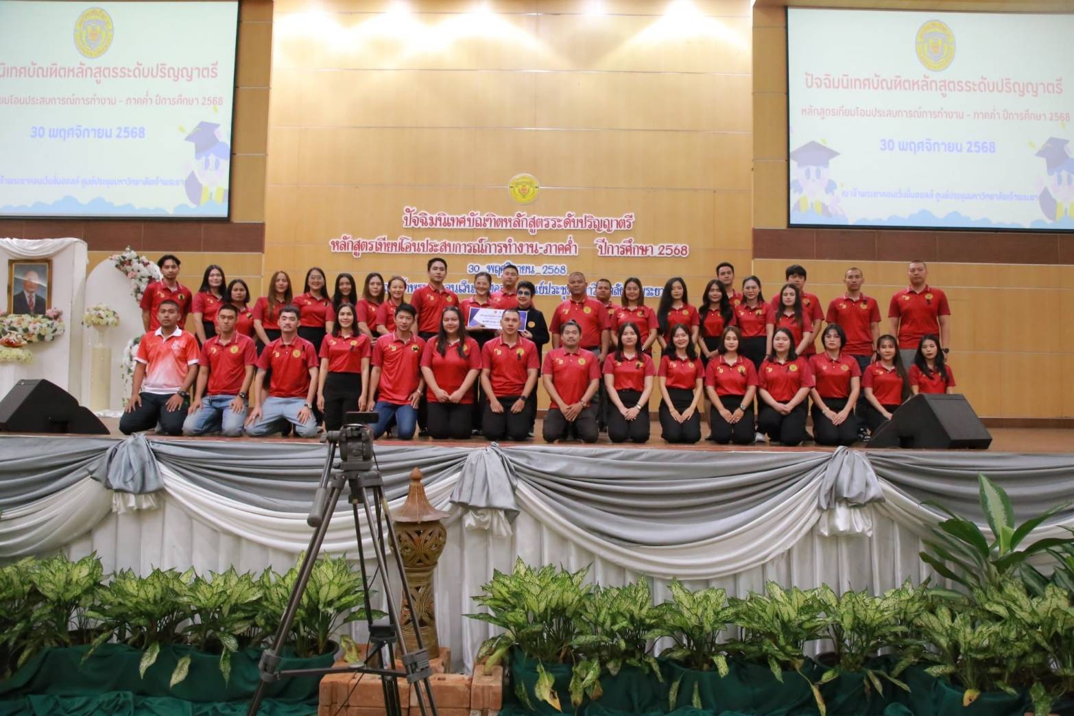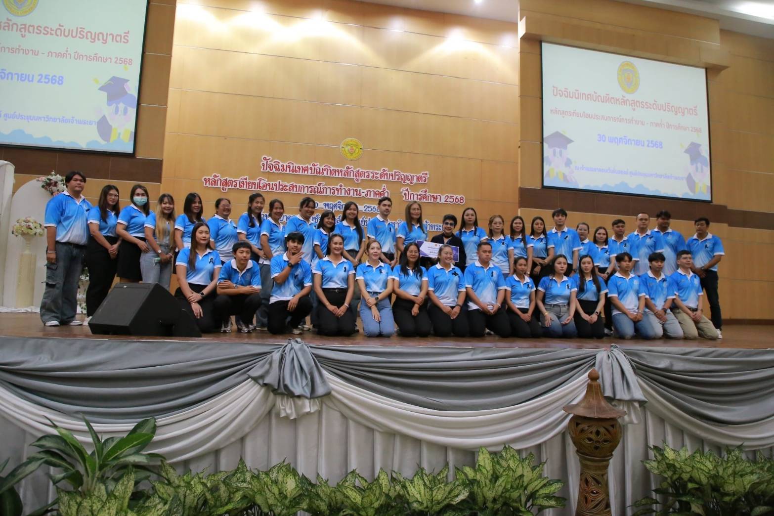 เมื่อวันอาทิตย์ที่ 30 พฤศจิกายน 2568 ณ เจ้าพระยาคอนเว็นชั่นฮอลล์ ศูนย์ประชุมมหาวิทยาลัยเจ้าพระยา สำนักส่งเสริมวิชาการ มหาวิทยาลัยเจ้าพระยา ได้จัดกิจกรรมปัจฉิมนิเทศบัณฑิตหลักสูตรระดับปริญญาตรี ปีการศึกษา 2568 หลักสูตรเทียบโอนประสบการณ์การทำงานและหลักสูตรภาคค่ำ โดย ทันตแพทย์สุพจน์ หวังปรีดาเลิศกุล กรรมการสภามหาวิทยาลัยเจ้าพระยาให้เกียรติเป็นประธานในพิธี จากนั้น ผศ.จารุวรรณ กมลสินธุ์ ผู้อำนวยการหลักสูตรเทียบโอนประสบการณ์การทำงาน เป็นผู้กล่าวรายงาน และดร.ดารัตน์ ศิริวิริยะกุล วิภาตะกลัศ อธิการบดีมหาวิทยาลัยเจ้าพระยา ได้มอบปัจฉิมโอวาทแก่นักศึกษา ผ่านระบบออนไลน์