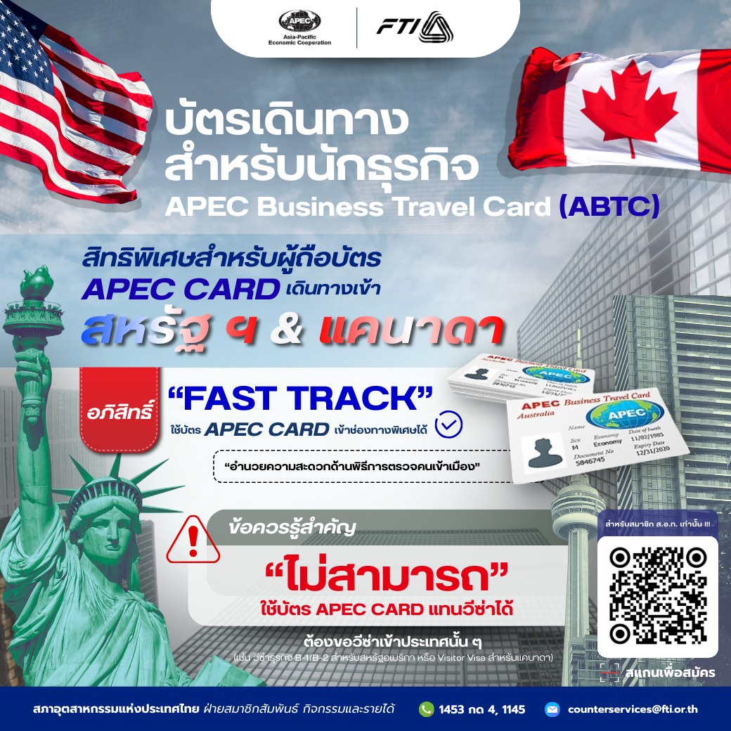 …………………………………… @ APEC Business Travel Card – เดินทางสู่สหรัฐอเมริกาและแคนาดา ได้สะดวกยิ่งขึ้น! สิทธิพิเศษสำหรับผู้ถือบัตร APEC ใช้ช่องทางพิเศษ (Fast Lane / APEC Lane) ลดขั้นตอนตรวจคนเข้าเมือง ลดระยะเวลารอคิว เพิ่มความสะดวกรวดเร็วในการเดินทาง