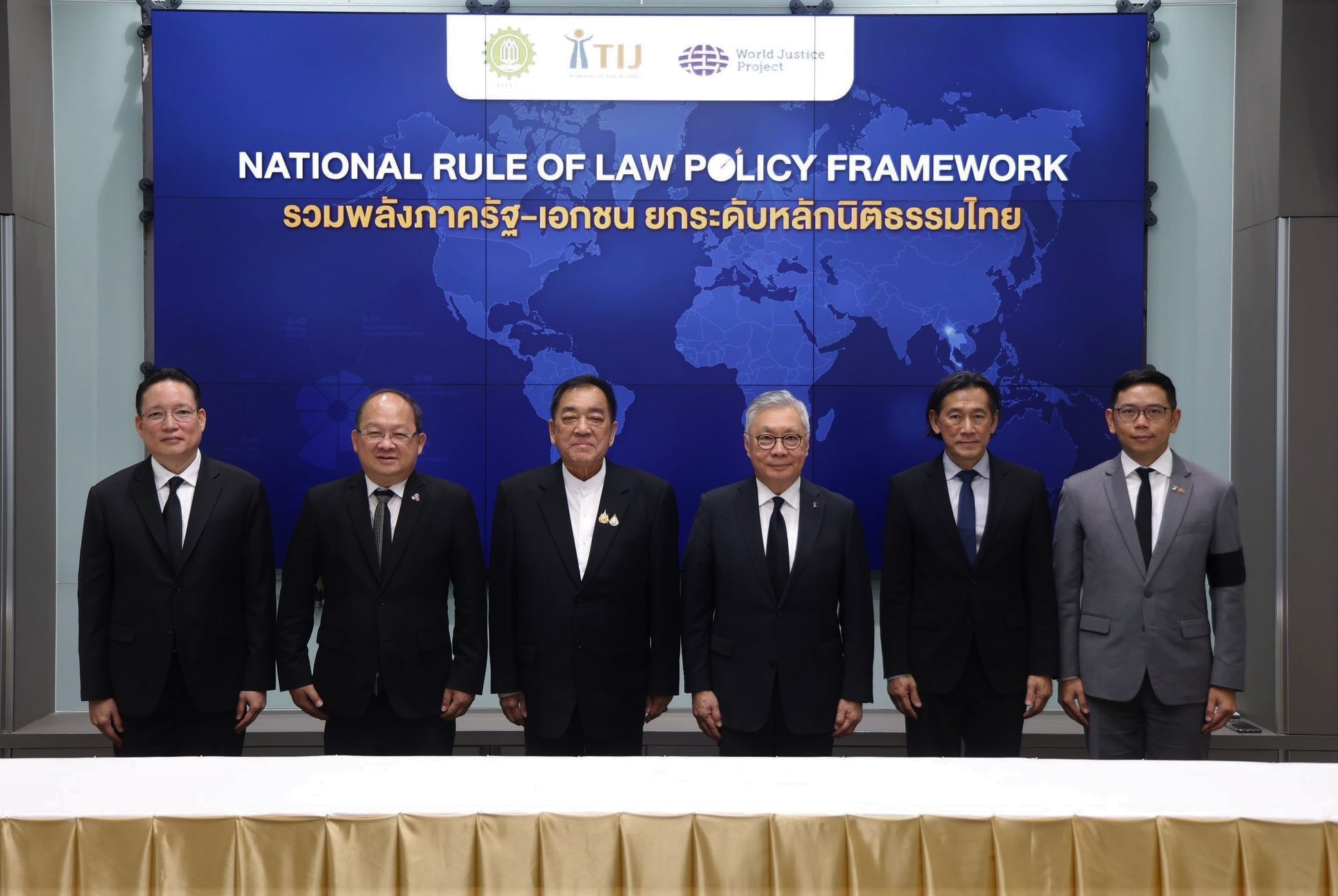 TIJ เชื่อว่า การยกระดับหลักนิติธรรมไม่สามารถดำเนินการได้โดยรัฐเพียงลำพัง จึงขอประกาศจุดยืนในการร่วมกับทุกภาคส่วน รวมถึง คณะกรรมการร่วมภาคเอกชน 3 สถาบัน (กกร.) ผลักดันให้เกิด Rule of Law Policy Framework  ที่จะเป็นกรอบทิศทางการทำงานที่มีความต่อเนื่องแม้ว่าการเมืองจะเปลี่ยนแปลง ครอบคลุมการปฏิรูปกฎหมาย การป้องกันคอร์รัปชั่น การส่งเสริมรัฐบาลเปิด การยกระดับกระบวนการยุติธรรม และการคุ้มครองสิทธิประชาชน ผ่านแนวทาง Whole-of-Society Approach เพื่อเปิดพื้นที่ให้ทุกภาคส่วนมีส่วนร่วมในการกำหนดอนาคต และในช่วงเปลี่ยนผ่านทางการเมือง Framework นี้จะทำหน้าที่เป็น “เข็มทิศนโยบาย” ให้พรรคการเมืองนำไปใช้แข่งขันทางนโยบายอย่างสร้างสรรค์ ขณะเดียวกันก็เป็นเครื่องมือให้ประชาชนใช้ตั้งคำถามและติดตามการทำงานของรัฐบาลในอนาคต เพื่อสร้างระบบนิเวศทางสังคมที่โปร่งใสและยั่งยืน