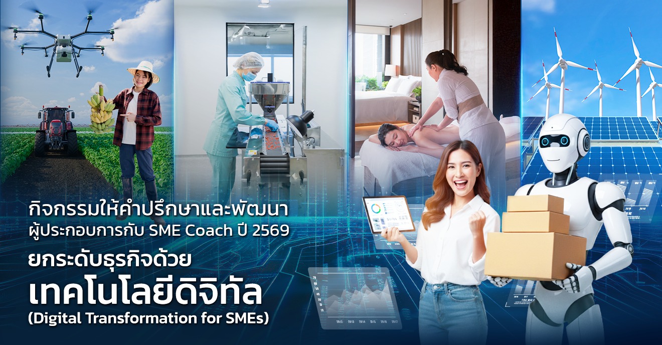 …………………………………… @ เปิดรับสมัครแล้ว! โครงการ SME Coach ปี 2569 ยกระดับธุรกิจไทยด้วยเทคโนโลยี โอกาสดีของผู้ประกอบการ SME ทั่วประเทศ! หากคุณกำลังมองหาตัวช่วยในการ “ตรวจสุขภาพธุรกิจ” และต้องการ “เข้าถึงแหล่งเงินทุน” อย่างมั่นใจ โครงการนี้คือคำตอบ!