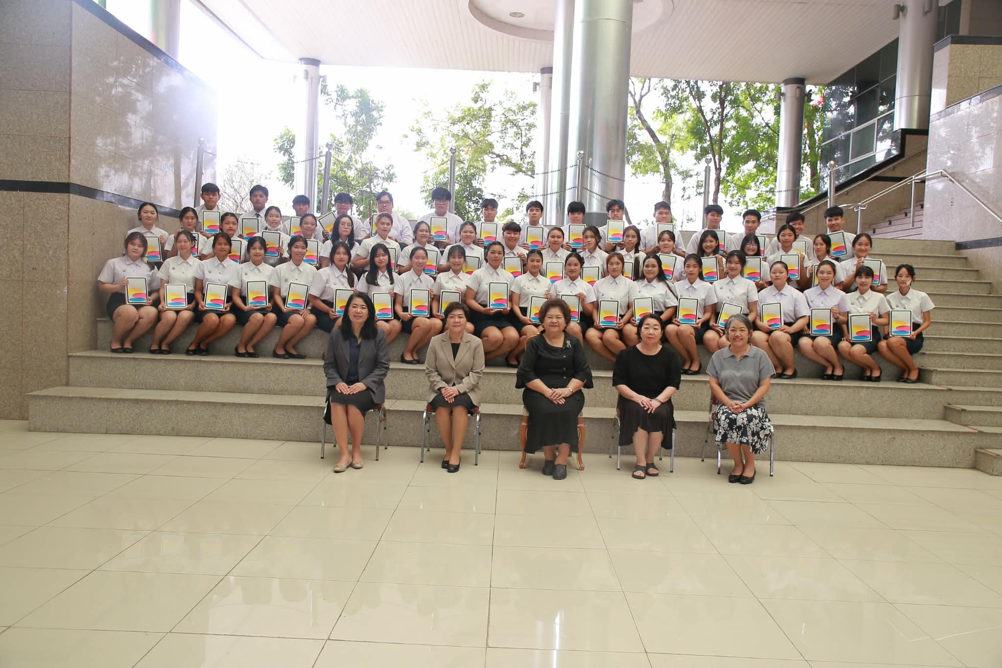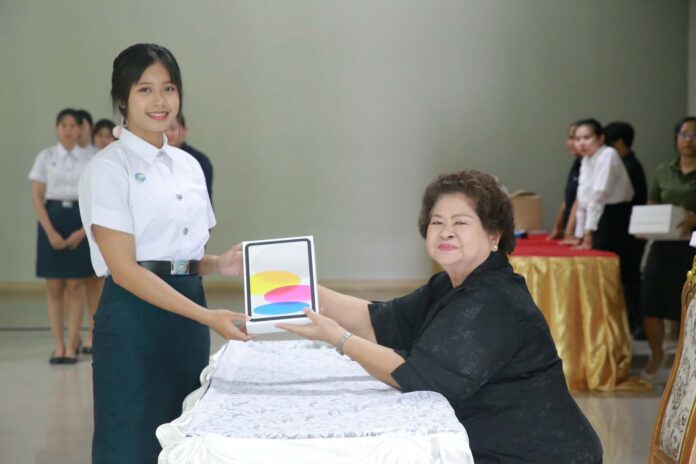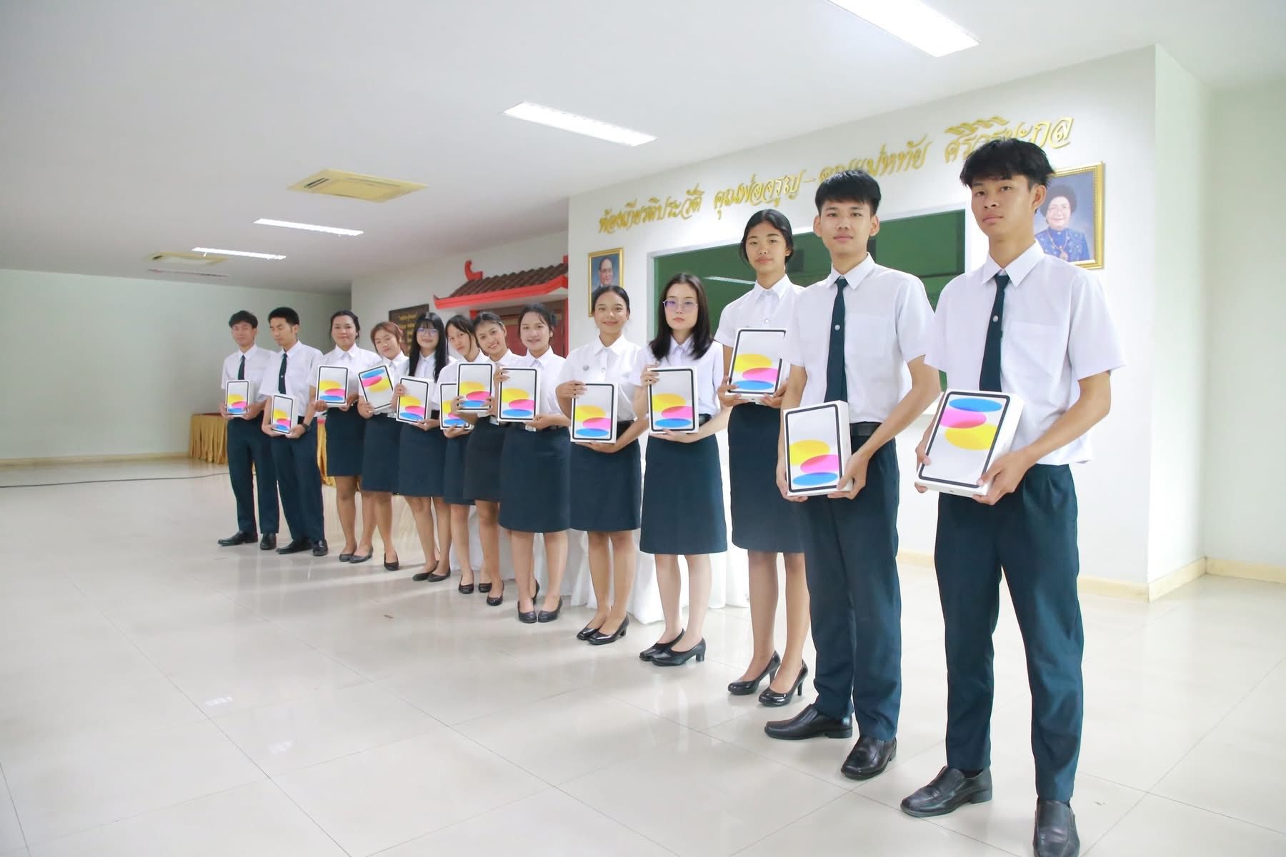 ดร.ดารัตน์ ศิริวิริยะกุล วิภาตะกลัศ อธิการบดีมหาวิทยาลัยเจ้าพระยา มอบทุน IPAD ให้กับนักศึกษารหัส 68 ณ โถงหน้าห้องเกียรติประวัติ ศูนย์ประชุมมหาวิทยาลัยเจ้าพระยา เพื่อให้นักศึกษาได้นำไปใช้ประโยชน์ในการศึกษาเล่าเรียนและสามารถเข้าถึงเทคโนโลยีที่ทันสมัยอย่างยั่งยืน เมื่อวันอาทิตย์ที่ 14 ธันวาคม 2568