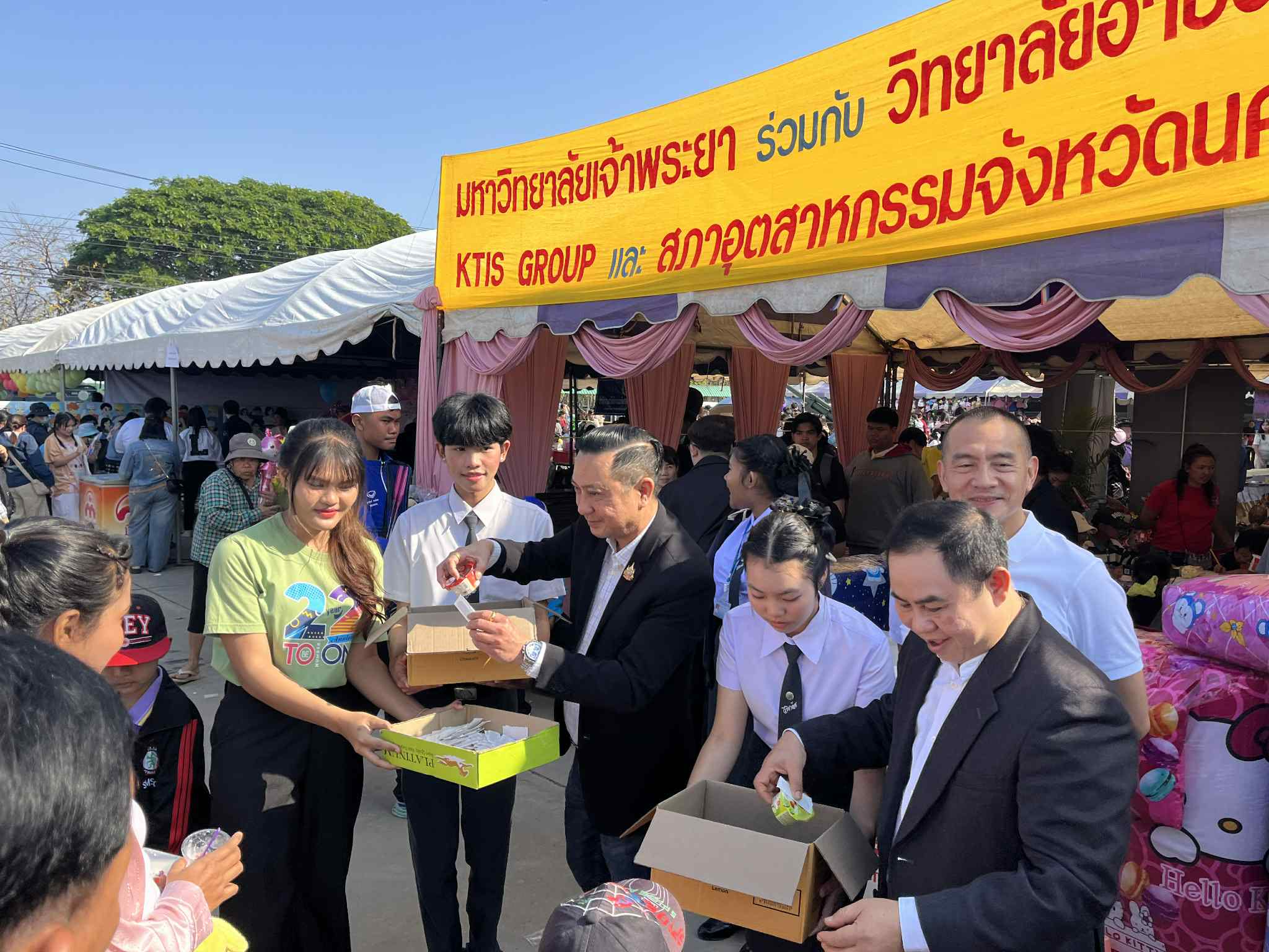 มหาวิทยาลัยเจ้าพระยา ร่วมกับวิทยาลัยอาชีวศึกษาวิริยาลัยนครสวรรค์ KTIS GROUP สภาอุตสาหกรรมจังหวัดนครสวรรค์ ได้รับเกียรติจากชุติพร เสชัง ผู้ว่าราชการจังหวัดนครสวรรค์ และรองผู้ว่าราชการจังหวัดนครสวรรค์ ๓ ท่าน ประกอบด้วย ว่าที่ร้อยตรีศราวุธ จันทวงศ์ บดินทร์ เกษมศานติ์ เศวต เพชรนุ้ย รวมทั้งพลตำรวจเอก สมศักดิ์ จันทะพิงค์ นายกองค์การบริหารส่วนจังหวัดนครสวรรค์ ให้เกียรติเข้าเยี่ยมชมบูทและร่วมถ่ายภาพกับผู้บริหารและคณาจารย์ โดยพัชรี โอชารส ผู้ช่วยอธิการบดี มหาวิทยาลัยเจ้าพระยา นำคณาจารย์และนักศึกษาจัดกิจกรรมมอบรางวัลและของขวัญส่งความสุขให้กับเด็กและเยาวชน เนื่องในงานวันเด็กแห่งชาติ ประจำปี 2569 เมื่อวันเสาร์ที่ 10 มกราคม 2569 ณ แหล่งท่องเที่ยวบึงบอระเพ็ด อำเภอเมืองฯ จังหวัดนครสวรรค์