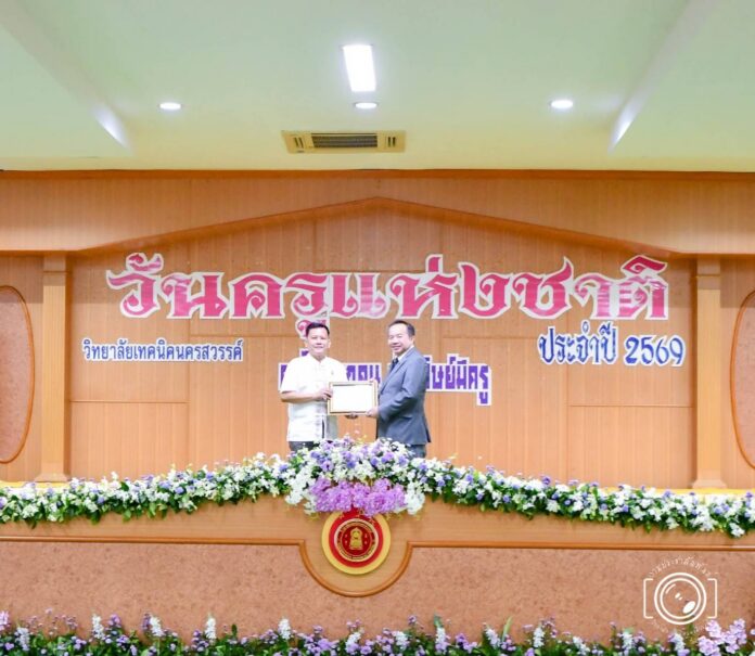 วรวุฒิ สุขเสวก ผู้อำนวยการวิทยาลัยอาชีวศึกษาวิริยาลัยนครสวรรค์ นำคณาจารย์ บุคลากรจากวิทยาลัยอาชีวศึกษาวิริยาลัยนครสวรรค์ เข้ารับรางวัลประกาศเกียรติคุณ “ผู้บริหารและครูดีอาชีวะ” เนื่องในโอกาส “วันครูแห่งชาติ” ปี 2569 ณ วิทยาลัยเทคนิคนครสวรรค์ เมื่อวันศุกร์ที่ 16 มกราคม 2569