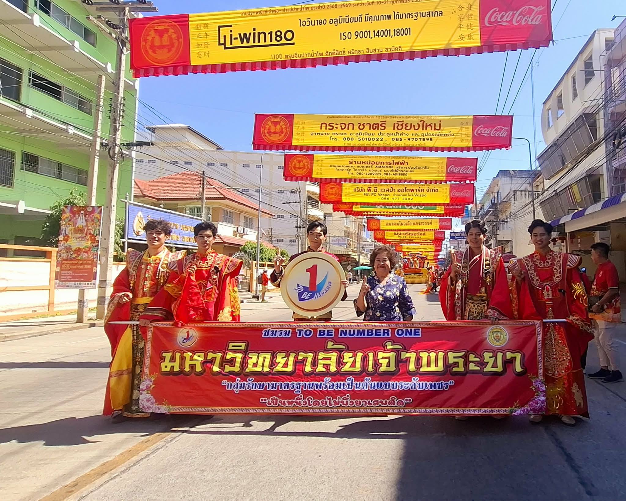 ดร.ดารัตน์ ศิริวิริยะกุล วิภาตะกลัศ  อธิการบดีมหาวิทยาลัยเจ้าพระยา  เข้าร่วมชมขบวนแห่ของศูนย์ศิลปวัฒนธรรม มหาวิทยาลัยเจ้าพระยา  พร้อมด้วยผู้บริหารระดับสูง ร่วมรับชมขบวนแห่ในชุด “บูเช็กเทียน” และ“7 นางฟ้าโปรยดอกไม้” โดยได้รับเกียรติจากนางสาวชุติพร เสชัง ผู้ว่าราชการจังหวัดนครสวรรค์ และพลตำรวจเอกสมศักดิ์ จันทะพิงค์ นายกองค์การบริหารส่วนจังหวัด (อบจ.) นครสวรรค์ ได้ร่วมถ่ายภาพให้กำลังใจนักศึกษาก่อนการแสดงในช่วงแห่กลางวัน และรองผู้ว่าราชการจังหวัดนครสวรรค์ 4 ท่าน ประกอบด้วย นายเศวต เพชรนุ้ย นายบดินทร์ เกษมศานติ์ นายวิทยา  จันทน์เสนะ และว่าที่ร้อยตรี ศราวุธ  จันทวงศ์ ที่มาให้กำลังใจช่วงการแสดง และให้เกียรติถ่ายภาพร่วมกับนักแสดงของศูนย์ศิลปวัฒนธรรม มหาวิทยาลัยเจ้าพระยา  ซึ่งสร้างความประทับใจให้กับผู้ชมตลอดเส้นทางของขบวนแห่ในงานประเพณีแห่เจ้าพ่อเจ้าแม่ปากน้ำโพ 2569”  ในชื่องาน “110 ปี ตรุษจีนแห่งสีสัน เมืองสวรรค์ 5 ภาษา” ซึ่งเป็นประเพณีสำคัญที่สะท้อนอัตลักษณ์และความภาคภูมิใจของชาวนครสวรรค์ พร้อมส่งเสริมเศรษฐกิจและการท่องเที่ยวในพื้นที่จังหวัดนครสวรรค์ โดยทางมหาวิทยาลัยเจ้าพระยาได้นำการแสดงในชุดบูเช็กเทียน และ 7 นางฟ้าโปรยดอกไม้ ของศูนย์ศิลปวัฒนธรรม มหาวิทยาลัยเจ้าพระยา เข้าร่วมแสดงในขบวนแห่รอบเขตเทศบาลนครนครสวรรค์ โดยขบวนแห่กลางคืนวันพฤหัสบดีที่ 19 กุมภาพันธ์ 2569 และขบวนแห่กลางวัน ในวันศุกร์ที่ 20 กุมภาพันธ์  2569