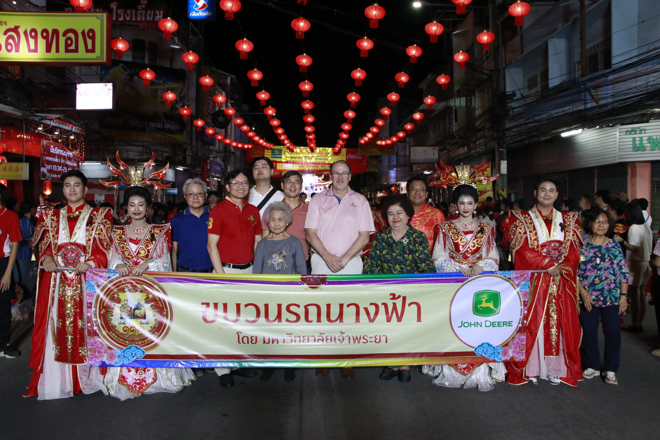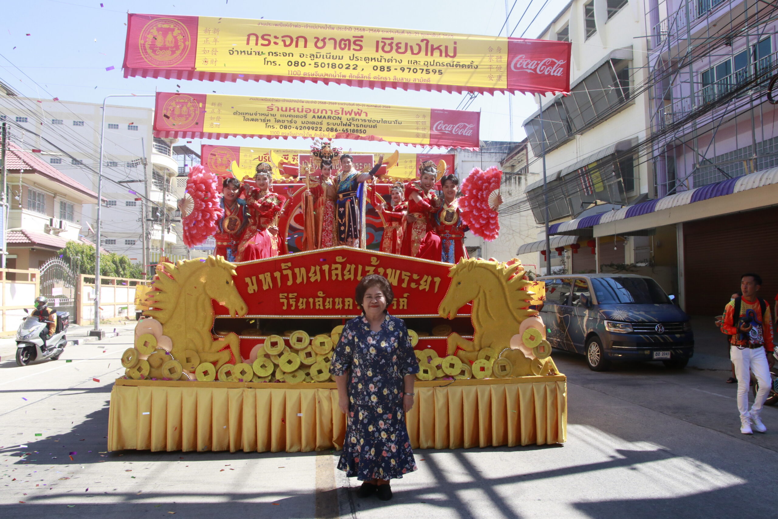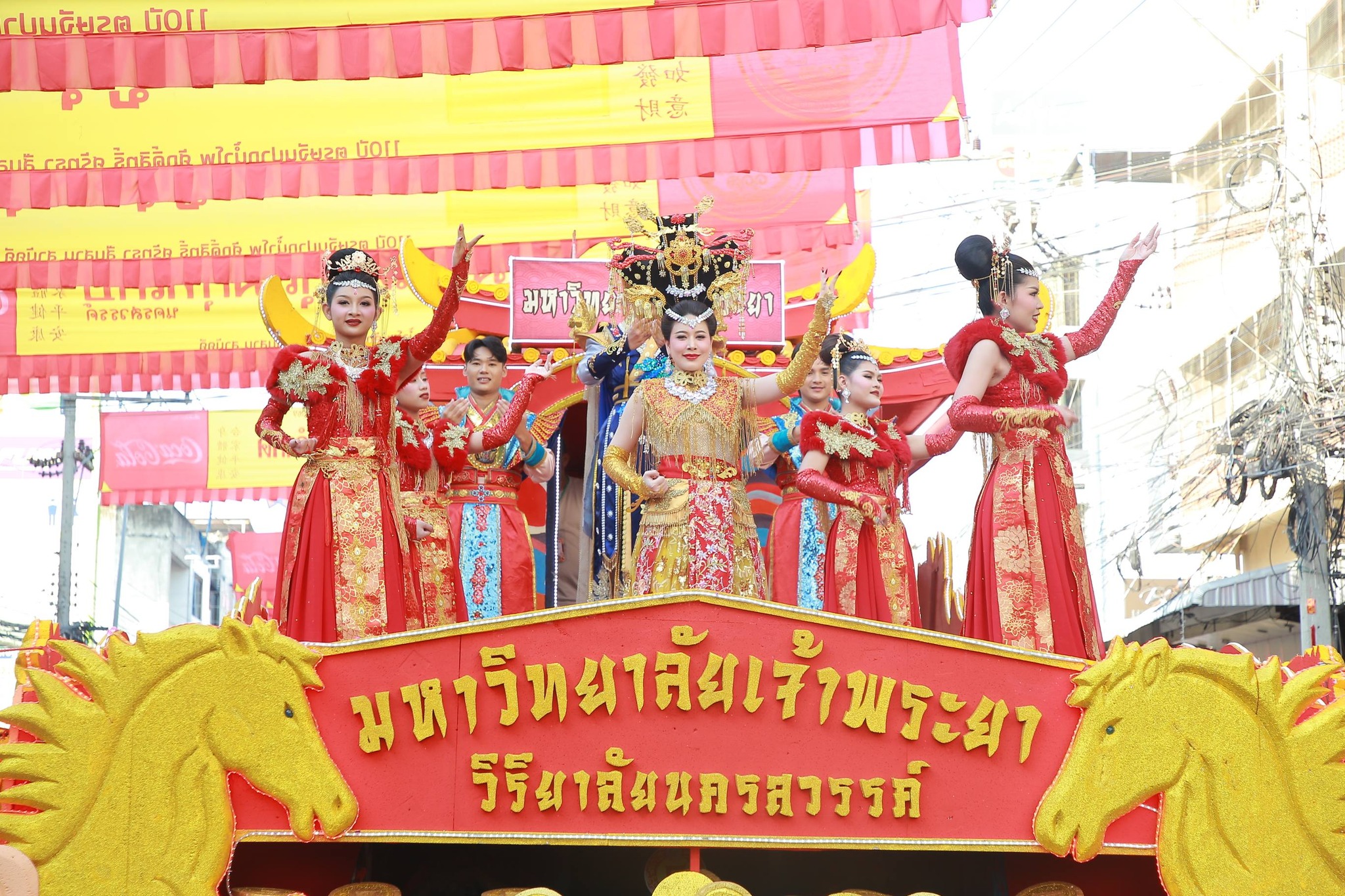 ชุติพร เสชัง ผู้ว่าราชการจังหวัดนครสวรรค์ พลตำรวจเอกสมศักดิ์ จันทะพิงค์ นายกองค์การบริหารส่วนจังหวัด (อบจ.) นครสวรรค์ พร้อมด้วยรองผู้ว่าราชการจังหวัดฯ  ดร.ดารัตน์ ศิริวิริยะกุล วิภาตะกลัศ อธิการบดีมหาวิทยาลัยเจ้าพระยาและประธานคณะกรรมการบริหารวิทยาลัยอาชีวศึกษาวิริยาลัยนครสวรรค์ พร้อมผู้บริหารระดับสูงและคณาจารย์ ร่วมให้กำลังใจผู้ถือป้ายในขบวนแห่และนักศึกษานักแสดงบนรถนางฟ้ามหาวิทยาลัยเจ้าพระยาและวิทยาลัยอาชีวศึกษาวิริยาลัยนครสวรรค์ ที่ร่วมขบวนแห่งานประเพณีแห่เจ้าพ่อ-เจ้าแม่ปากน้ำโพ ประจำปี 2569 เมื่อวันพฤหัสบดีที่ 19 กุมภาพันธ์ 2569 (แห่กลางคืน) และวันศุกร์ที่ 20 กุมภาพันธ์ 2569 (แห่กลางวัน) โดยมีการแสดงในชุดการแสดง “7 นางฟ้าโปรยดอกไม้” ของนักศึกษาชมรมการแสดงวิทยาลัยอาชีวศึกษาวิริยาลัยนครสวรรค์ที่เป็นตำนานในขบวนแห่เจ้าพ่อ-เจ้าแม่ ปากน้ำโพตลอดมาทุกๆปี รวมทั้งชุดการแสดงของศูนย์ศิลปวัฒนธรรมมหาวิทยาลัยเจ้าพระยาที่ผู้ชมรอคอยซึ่งในปีนี้คือการแสดงชุด “ บูเช็กเทียน ” ที่งดงามอลังการเป็นที่ชื่นชอบของผู้ที่มาชมงานอย่างยิ่ง