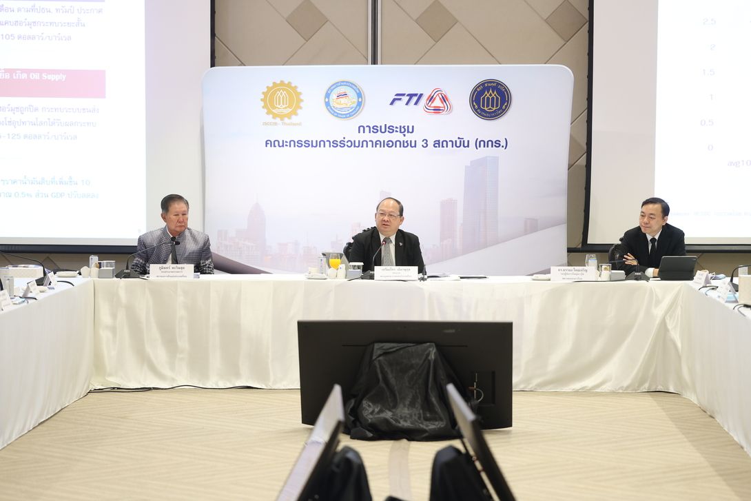 นายเกรียงไกร เธียรนุกุล ประธานสภาอุตสาหกรรมแห่งประเทศไทย (ส.อ.ท.) เป็นประธานการแถลงข่าว คณะกรรมการร่วมภาคเอกชน 3 สถาบัน (กกร.) โดยมีนายภูมินทร์ หะรินสุต รองประธานกรรมการสภาหอการค้าแห่งประเทศไทย และ ดร.ยรรยง ไทยเจริญ รองผู้จัดการใหญ่อาวุโสสมาคมธนาคารไทย ร่วมแถลง ณ ศูนย์การประชุมแห่งชาติสิริกิติ์ กรุงเทพฯ