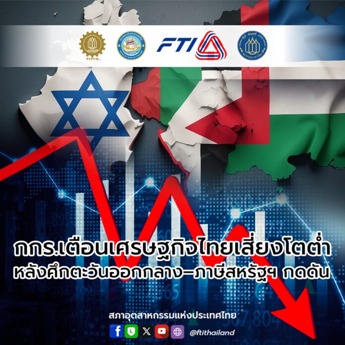 ความขัดแย้งในตะวันออกกลางที่ทวีความรุนแรงส่งผลต่อเสถียรภาพเศรษฐกิจและความมั่นคงของโลก โดยราคาน้ำมัน ราคาก๊าซธรรมชาติ ในตลาดล่วงหน้าพุ่งสูงขึ้น และมีแนวโน้มจะยังอยู่ในระดับสูงในช่วง 1-3 เดือนข้างหน้า นอกจากนี้ยังกระทบการขนส่งสินค้ารวมถึงสินค้าพลังงานทางเรือและการเดินทางทางอากาศ ซึ่งหากสถานการณ์ยืดเยื้อจะมีผลกระทบต่อเศรษฐกิจไทย ทั้งจากราคาพลังงานในประเทศซึ่งเป็นต้นทุนสำคัญของธุรกิจและครัวเรือนที่จะสูงขึ้น รวมทั้งภาคการท่องเที่ยวในระยะที่เที่ยวบินที่ผ่านตะวันออกกลางถูกยกเลิก ในเบื้องต้นสภาพัฒน์ฯ ประเมินว่าการสู้รบในตะวันออกกลางอาจทำให้เศรษฐกิจไทยในปี 2569 เติบโตได้เพียง 1.3%-1.6% ต่ำกว่าค่ากลางของการประเมินเดิมที่ 2.0% และต่ำกว่าประมาณการเดิมของ กกร. ที่ 1.6%-2.0% โดย กกร. จะมีการทบทวนต่อไป