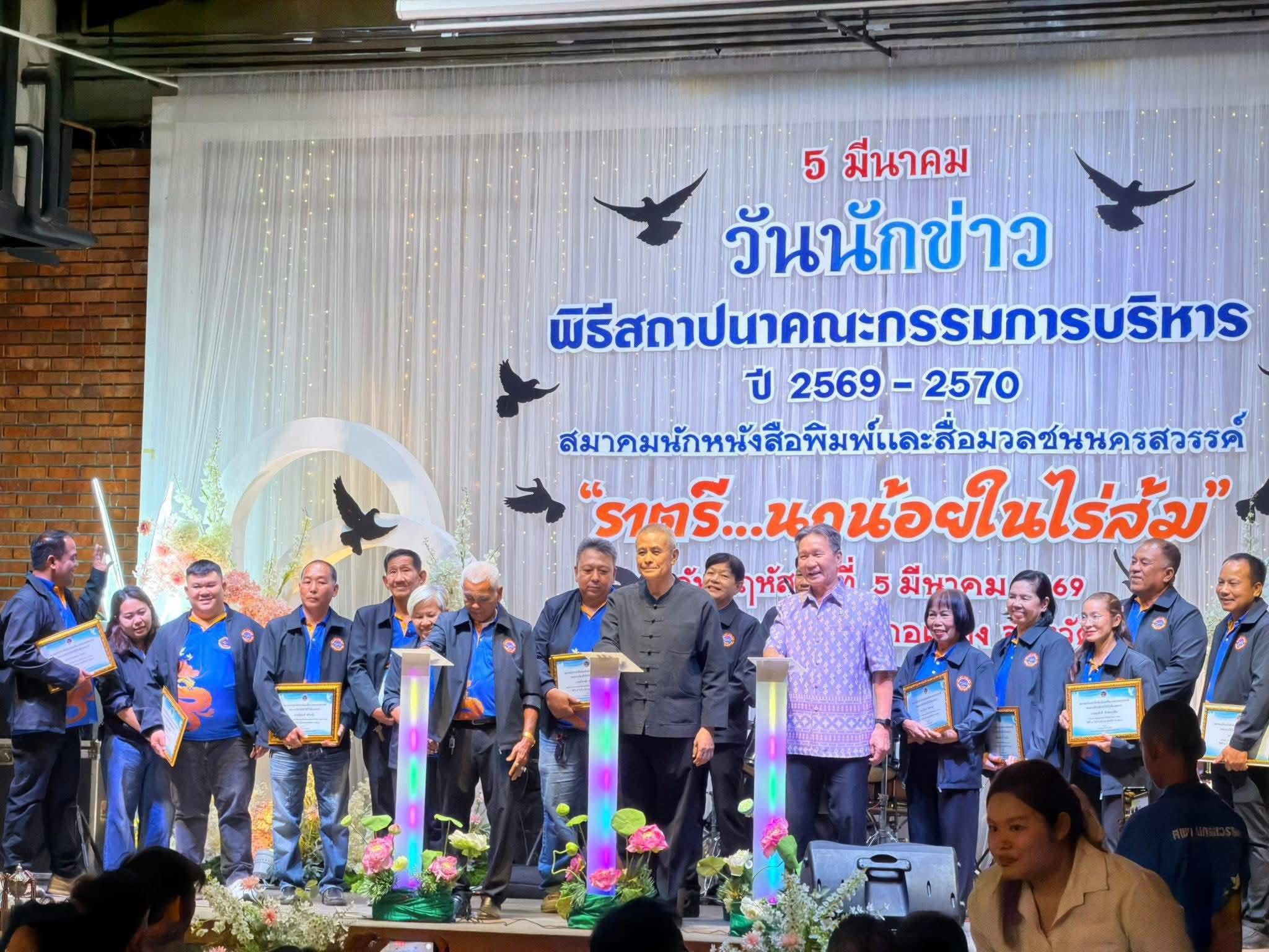 ผู้บริหาร คณาจารย์มหาวิทยาลัยเจ้าพระยาและวิทยาลัยอาชีวศึกษาวิริยาลัยนครสวรรค์ร่วมงาน 5 มีนาคม วันนักข่าว และพิธีสถาปนาคณะกรรมการบริหารปี 2569-2570 สมาคมนักหนังสือพิมพ์และสื่อมวลชนนครสวรรค์ “ราตรี…นกน้อยในไร่ส้ม” ได้รับเกียรติจากพลตำรวจเอกสมศักดิ์ จันทะพิงค์ นายกองค์การบริหารส่วนจังหวัดนครสวรรค์ เป็นประธานเปิดงาน พร้อมด้วย จิตตเกษมณ์ นิโรจน์ธนรัฐ นายกเทศมนตรีนครนครสวรรค์ เมื่อวันพฤหัสบดีที่ 5 มีนาคม 2569  ณ ภัตตาคารเล่งหงษ์