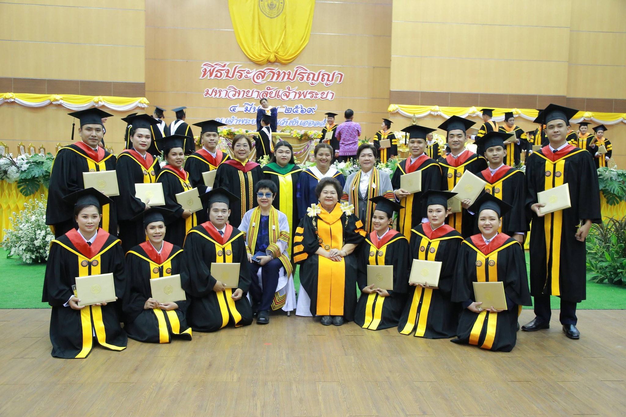 พลากร สุวรรณรัฐ องคมนตรี ให้เกียรติเป็นประธานในพิธีประสาทปริญญา มหาวิทยาลัยเจ้าพระยา ให้แก่ผู้สำเร็จการศึกษาประจำปีการศึกษา 2566-2567 โดยมี ปรีชา อรรถวิภัชน์ นายกสภามหาวิทยาลัยเจ้าพระยามอบสูจิบัตร ดร.ดารัตน์ ศิริวิริยะกุล วิภาตะกลัศ อธิการบดีมหาวิทยาลัยเจ้าพระยากล่าวรายงานกิจการมหาวิทยาลัยเจ้าพระยา ศิริรักษ์ ศิริวิริยะกุล รองอธิการบดีฝ่ายวิจัย วางแผนและพัฒนา เบิกดุษฎีบัณฑิตกิตติมศักดิ์ ดร.ร่มหลี สุมาลี และ ดร.ชาฮารูน อิสวัน บินโมฮัมหมัด @อินโดท เข้ารับปริญญาศิลปศาสตรดุษฎีบัณฑิตกิตติมศักดิ์ สาขาการบริหารการพัฒนาองค์การ และหลังเสร็จสิ้นพิธีประสาทปริญญา แพทย์หญิงปราณี ศิริวิริยะกุล รองอธิการบดีฝ่ายการเงิน การคลัง ได้กราบเรียนเชิญประธานในพิธีมอบทุนการศึกษา นายพ่วง สุวรรณรัฐ ให้กับนักศึกษารวมจำนวน 10 ทุน เมื่อวันพุธที่ 4 มีนาคม 2569 ณ เจ้าพระยาคอนเว็นชั่นฮอลล์ ศูนย์ประชุมมหาวิทยาลัยเจ้าพระยา