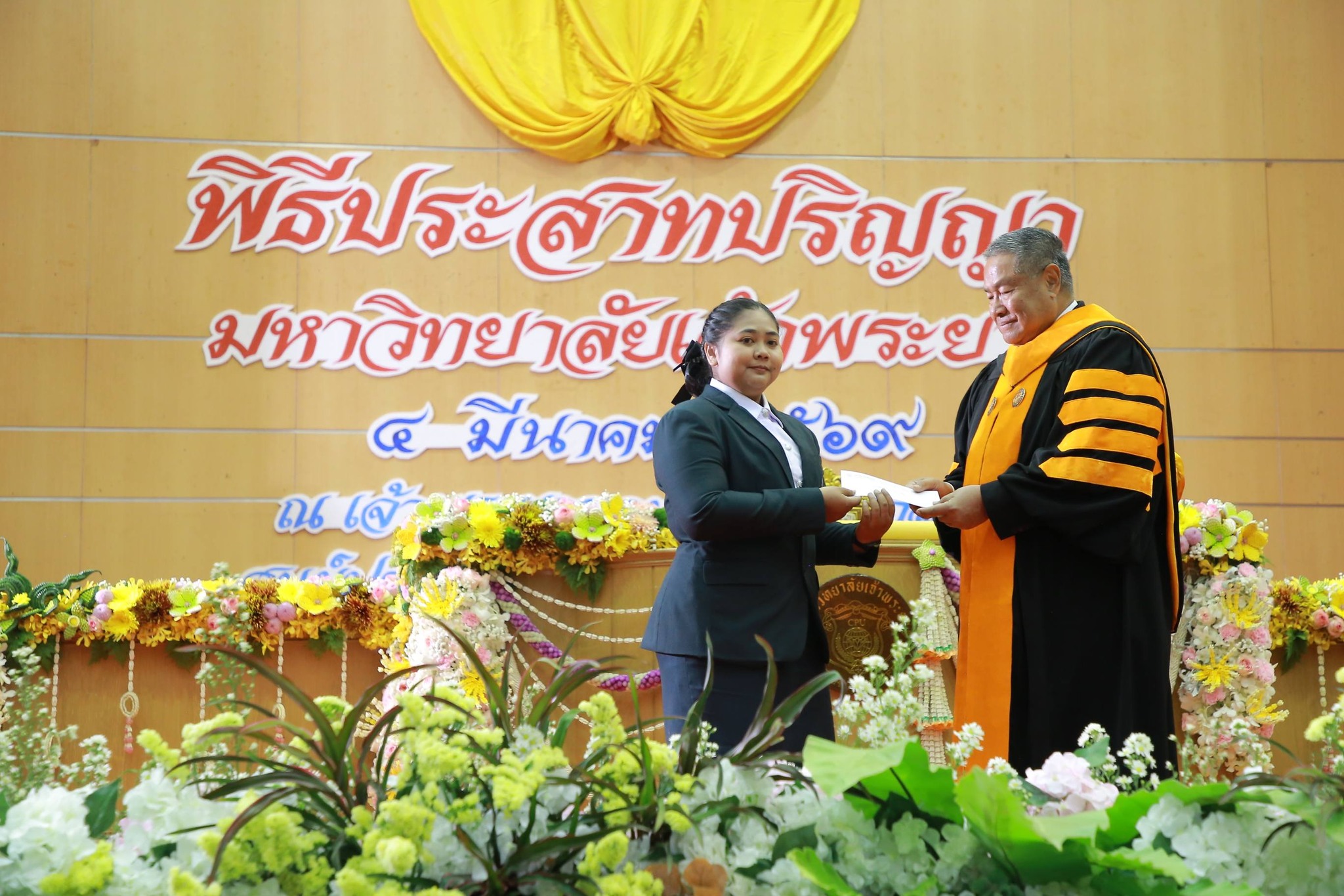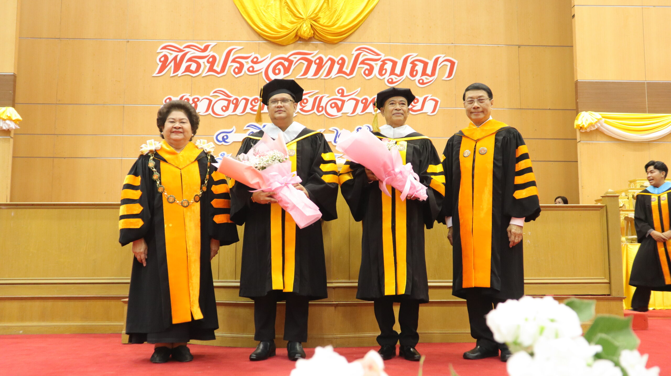 พลากร สุวรรณรัฐ องคมนตรี ให้เกียรติเป็นประธานในพิธีประสาทปริญญา มหาวิทยาลัยเจ้าพระยา ให้แก่ผู้สำเร็จการศึกษาประจำปีการศึกษา 2566-2567 โดยมี ปรีชา อรรถวิภัชน์ นายกสภามหาวิทยาลัยเจ้าพระยามอบสูจิบัตร ดร.ดารัตน์ ศิริวิริยะกุล วิภาตะกลัศ อธิการบดีมหาวิทยาลัยเจ้าพระยากล่าวรายงานกิจการมหาวิทยาลัยเจ้าพระยา ศิริรักษ์ ศิริวิริยะกุล รองอธิการบดีฝ่ายวิจัย วางแผนและพัฒนา เบิกดุษฎีบัณฑิตกิตติมศักดิ์ ดร.ร่มหลี สุมาลี และ ดร.ชาฮารูน อิสวัน บินโมฮัมหมัด @อินโดท เข้ารับปริญญาศิลปศาสตรดุษฎีบัณฑิตกิตติมศักดิ์ สาขาการบริหารการพัฒนาองค์การ และหลังเสร็จสิ้นพิธีประสาทปริญญา แพทย์หญิงปราณี ศิริวิริยะกุล รองอธิการบดีฝ่ายการเงิน การคลัง ได้กราบเรียนเชิญประธานในพิธีมอบทุนการศึกษา นายพ่วง สุวรรณรัฐ ให้กับนักศึกษารวมจำนวน 10 ทุน เมื่อวันพุธที่ 4 มีนาคม 2569 ณ เจ้าพระยาคอนเว็นชั่นฮอลล์ ศูนย์ประชุมมหาวิทยาลัยเจ้าพระยา