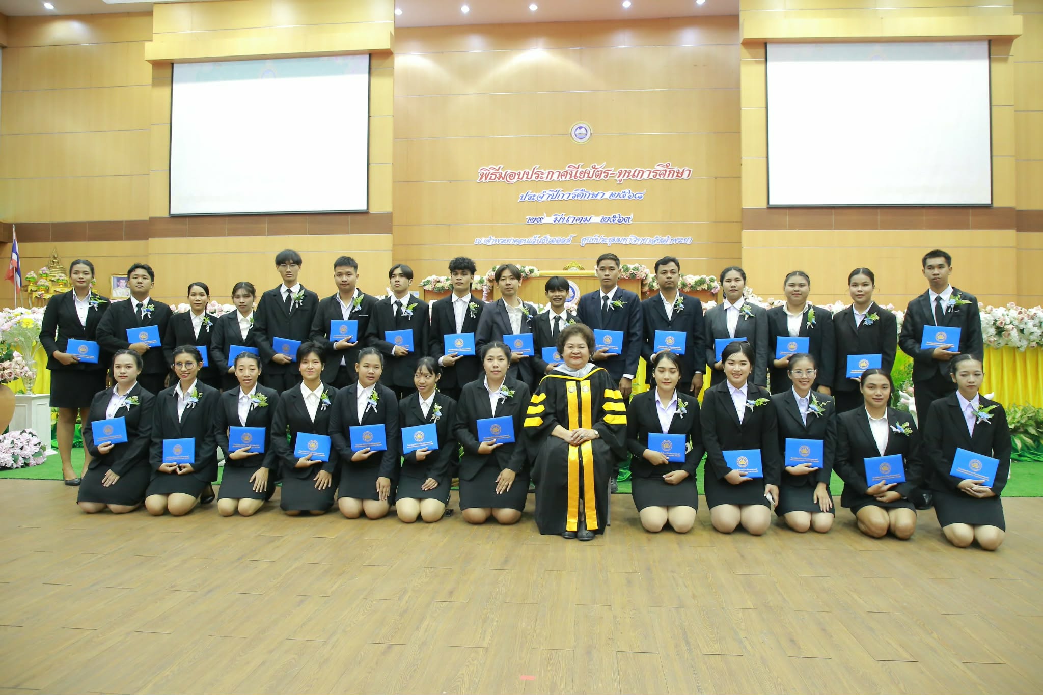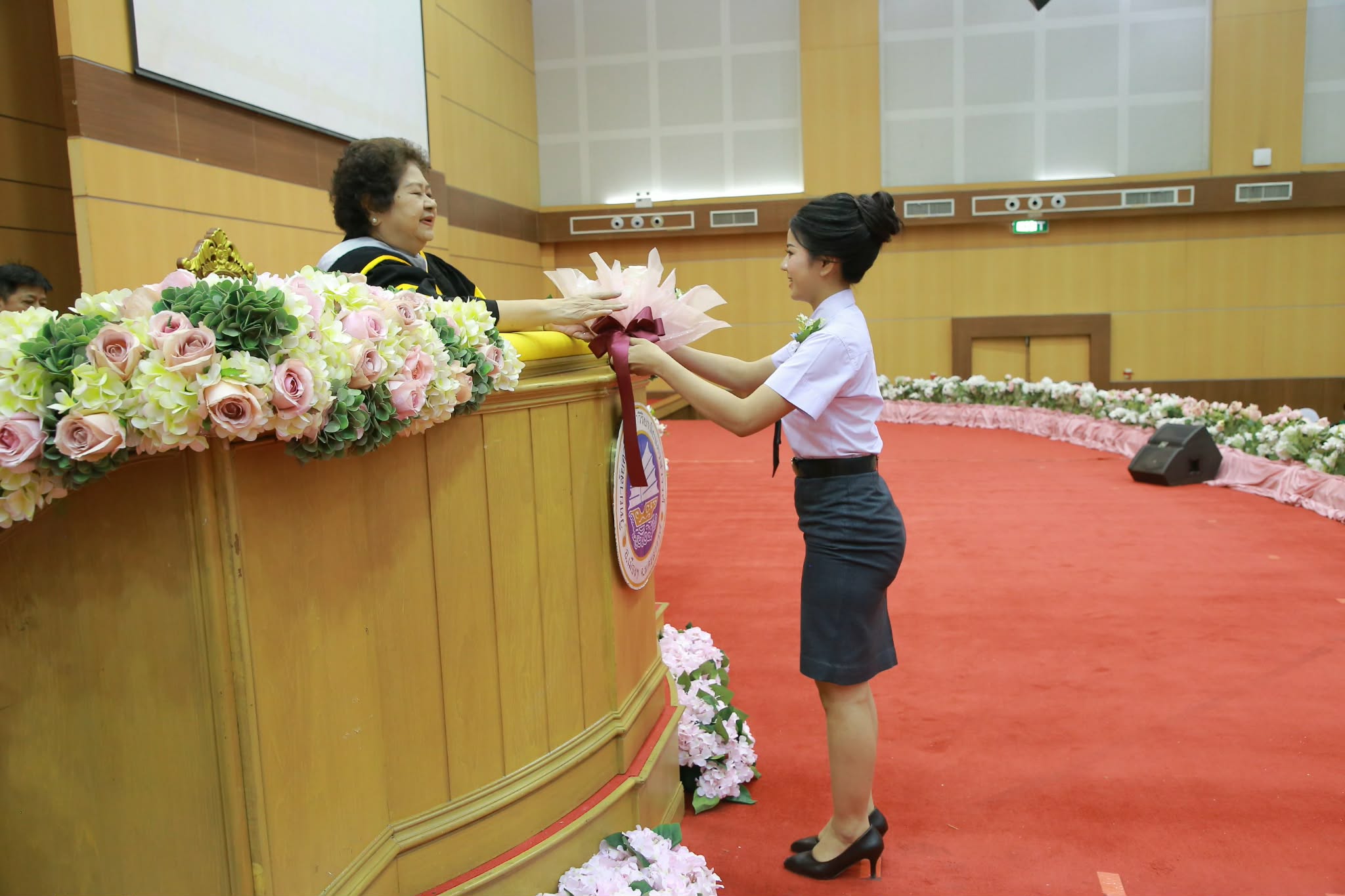 เมื่อเสร็จสิ้นพิธีงานและการมอบทุนการศึกษาแล้ว สราวดี  บุญศรี ผู้แทนนักศึกษาที่จบการศึกษาระดับประกาศนียบัตรวิชาชีพ (ปวช.3) และประกาศนียบัตรวิชาชีพขั้นสูง (ปวส.2) ได้มอบช่อดอกไม้เพื่อแสดงกตเวทิตาคุณต่อประธานในพิธีบรรยากาศความเป็นสิริมงคลแก่นักศึกษาก่อนก้าวสู่โลกการทำงานและเส้นทางอาชีพในอนาคต