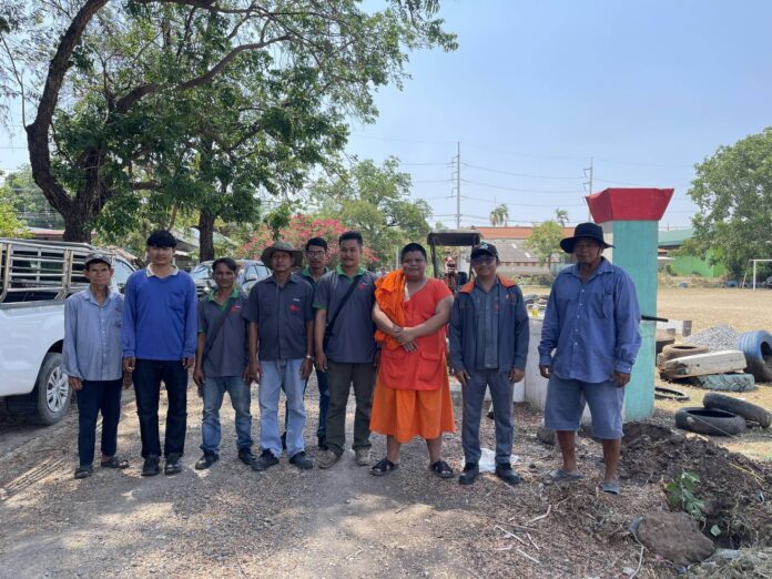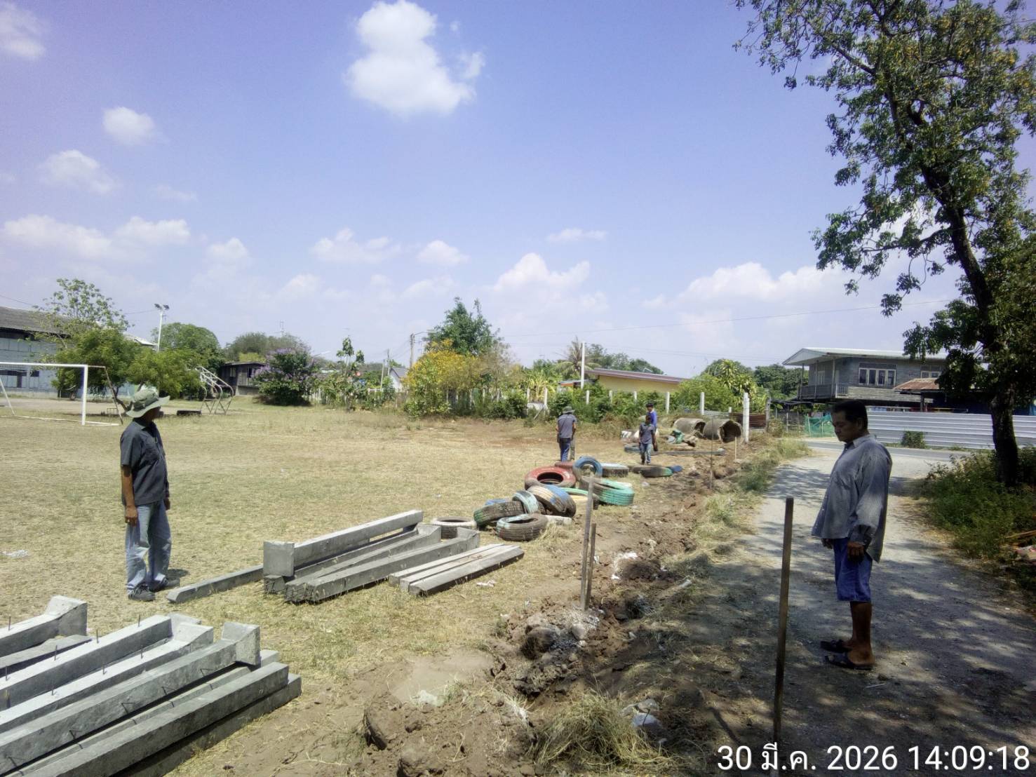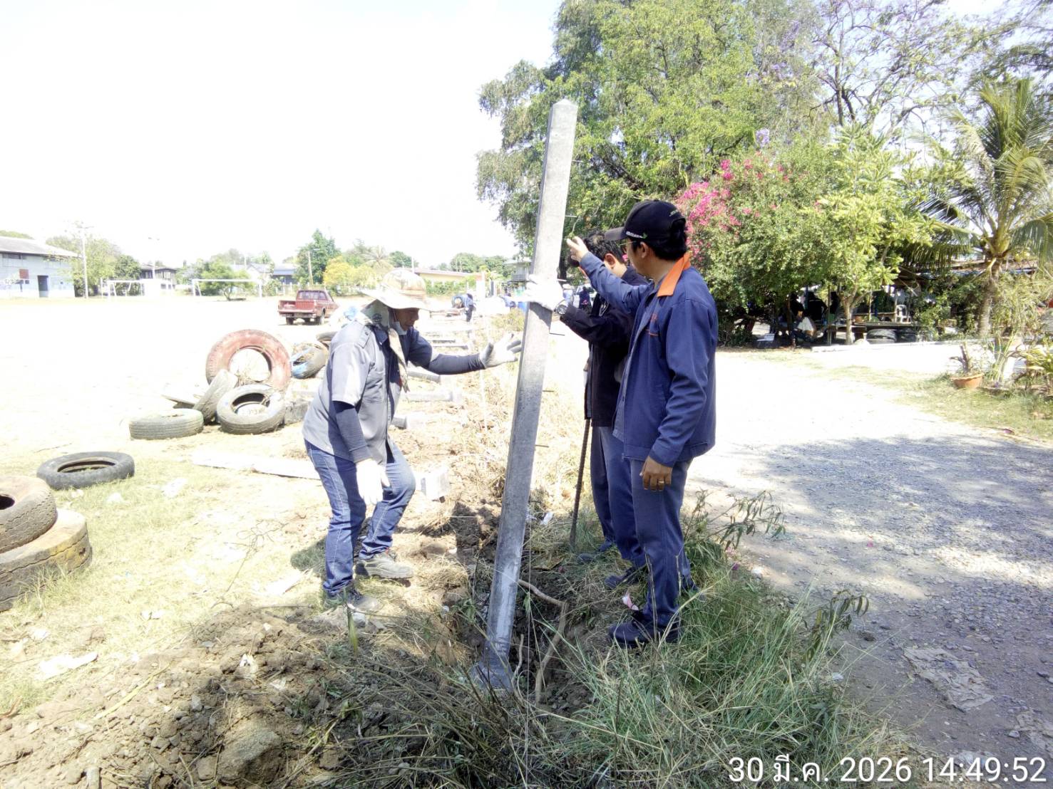 ผู้บริหาร บริษัท เกษตรไทย อินเตอร์ เนชั่นแนล ชูการ์ คอร์ปอเรชั่น จำกัด (มหาชน) มอบหมายให้ทีมงานมวลชนสัมพันธ์ KTIS GROUP นำพนักงานช่วยขุดหลุม และลากเสาปูนลงหลุมทำรั้วกั้นสนามฟุตบอล  เมื่อวันจันทร์ที่ 30 มีนาคม 2569 ณ บริเวณสนามฟุตบอลโรงเรียนวัดหนองโพ (นิวาสานุสรณ์) ตำบลหนองโพ อำเภอตาคลี จังหวัดนครสวรรค์
