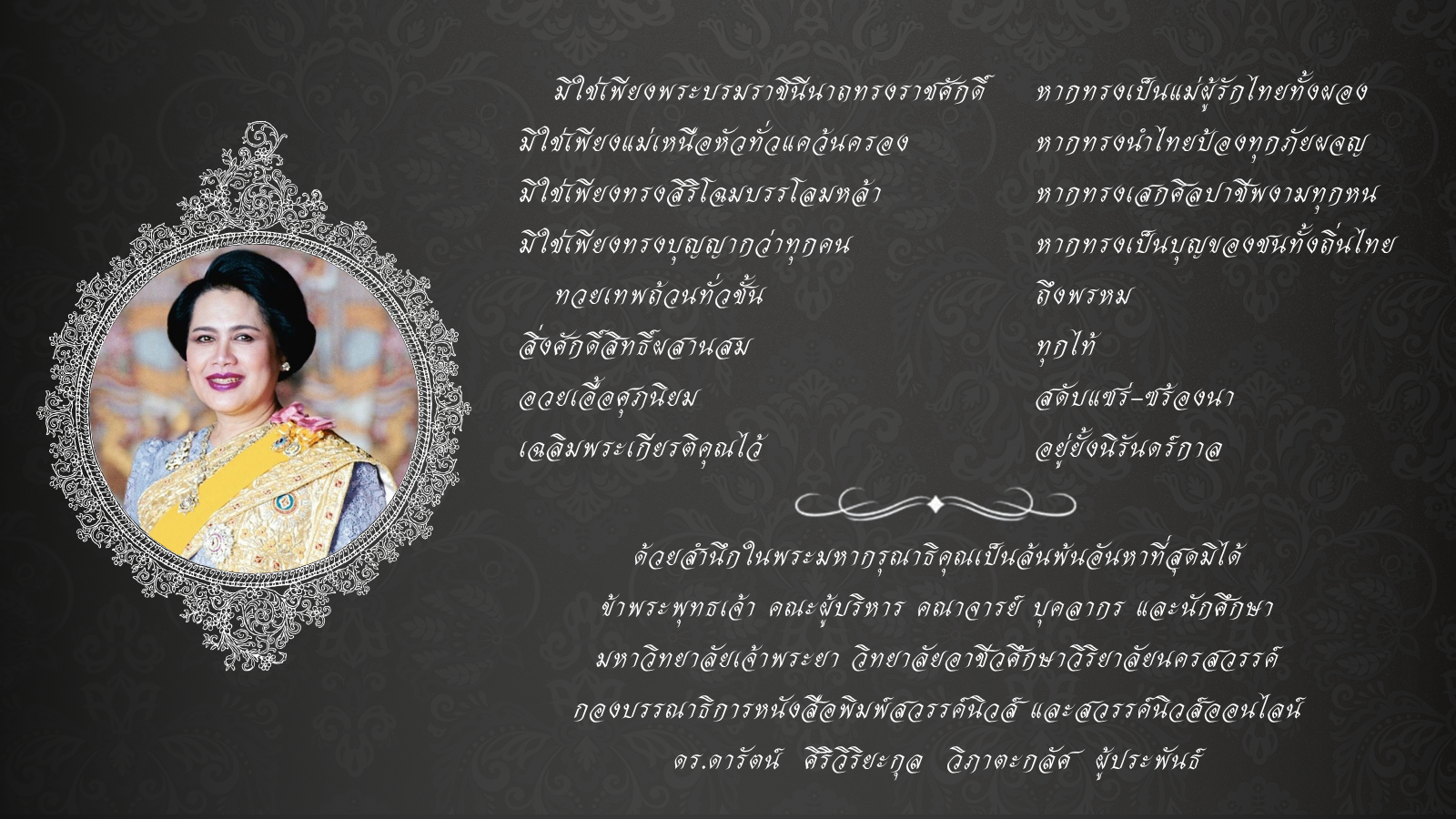 เจ้าของ ผู้พิมพ์ ผู้โฆษณา ดร. ดารัตน์ ศิริวิริยะกุล วิภาตะกลัส